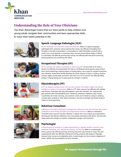 Complete this Registration Form and a Khan specialist will be in touch with you to discuss services and support for your family. At the end of the form, download a FREE PDF resource on Understanding the Role of Your Clinicians.